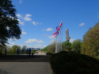 Po powrocie do samochodu pojechaliśmy na Westerplatte, uformowanego w latach 1845‑1847 półwyspu w Gdańsku, przy ujściu Martwej Wisły do Zatoki Gdańskiej. W latach 1926‑1939 była to eksklawa Rzeczypospolitej Polskiej wewnątrz terytorium Wolnego Miasta Gdańska. Jak wszytkim chyba wiadomo Westerplatte to symbol wybuchu II wojny światowej. W okresie międzywojennym funkcjonowała tutaj tak zwana Wojskowa Składnica Tranzytowa, na terenie której mieściła się polska składnica amunicyjna z oddziałem wartowniczym. To własnie jej obrona we wrześniu 1939 roku stała się symbolicznym początkiem II wojny światowej oraz polskiego oporu przeciw agresji III Rzeszy. 1 września 1939 roku o godz. 4.48, salwa 280-milimetrowych dział przybyłego do Gdańska z rzekomo pokojową wizytą niemieckiego pancernika „Schleswig-Holstein” rozpoczęła szturm piechoty na polską placówkę na Westerplatte. Przez siedem dni załoga odpierała liczne ataki od strony nasady półwyspu, bombardowana z powietrza i ostrzeliwana przez niemieckie działa i moździerze. 7 września wobec zdecydowanej przewagi nieprzyjaciela i wyczerpania załogi major Henryk Sucharski podjął decyzję o kapitulacji. W czasie tych walk poległo co najmniej piętnastu polskich żołnierzy, wielu było rannych. Straty niemieckie do dziś są nieznane. Po kapitulacji polscy żołnierze trafili do niemieckich obozów jenieckich, gdzie przebywali aż do 1945 roku. Dzisiaj ten skrawek ziemi ponownie należy do Polski. Znajduje się tutaj swoiste muzeum na wolnym powietrzu. Na całym terenie poustawiane są tablice opisujące i upamiętniające wydarzenia z czasów wojny, można zwiedzić pozostałości zniszonego bunkra. Na sztucznie usypanym pagórku wzniesiono monument o wysokości 25 metrów, który upamiętnia polskich obrońców Wybrzeża we wrześniu 1939 roku. Budowa pomnika trwała 2 lata. Uroczystość odsłonięcia odbyła się w niedzielę 9 października 1966 roku, w rocznicę bitwy pod Lenino. U stóp pomnika znajduje się również słynny napis, który powstał w czasach PRL-u – „Nigdy więcej wojny”.
