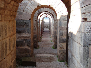- gimnazjon o wymiarach 200 na 150 metrów, o trzech kondygnacjach, w których znajdowały się sale wykładowe, biblioteka, łaźnia i świątynia.